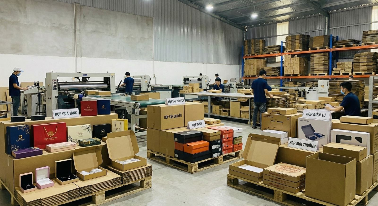In ấn thương hiệu: In logo, slogan, thông tin sản phẩm bằng công nghệ in Flexo (cho thùng ship COD, thùng công nghiệp) hoặc in Offset (cho hộp quà tặng, hộp giày).